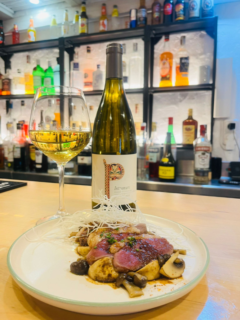 SABORS DE TEMPORADA_BOLETS: Magret de pato charsiu Acompañado de salteado de setas al wok con salsa Nikkei y fideos de arroz frito.
