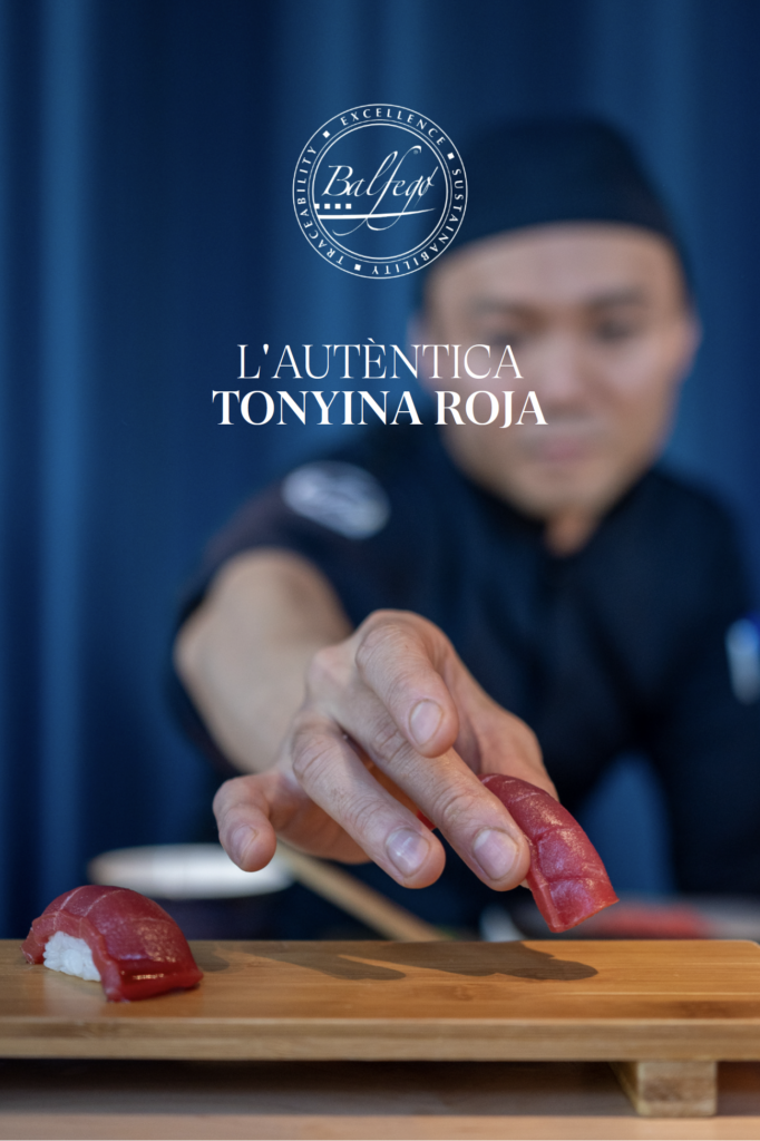 Daus de tonyina vermella Balfegó en tempura de cigrons, la nostra salsa “tacoyaki” i safrà de la Conca.
