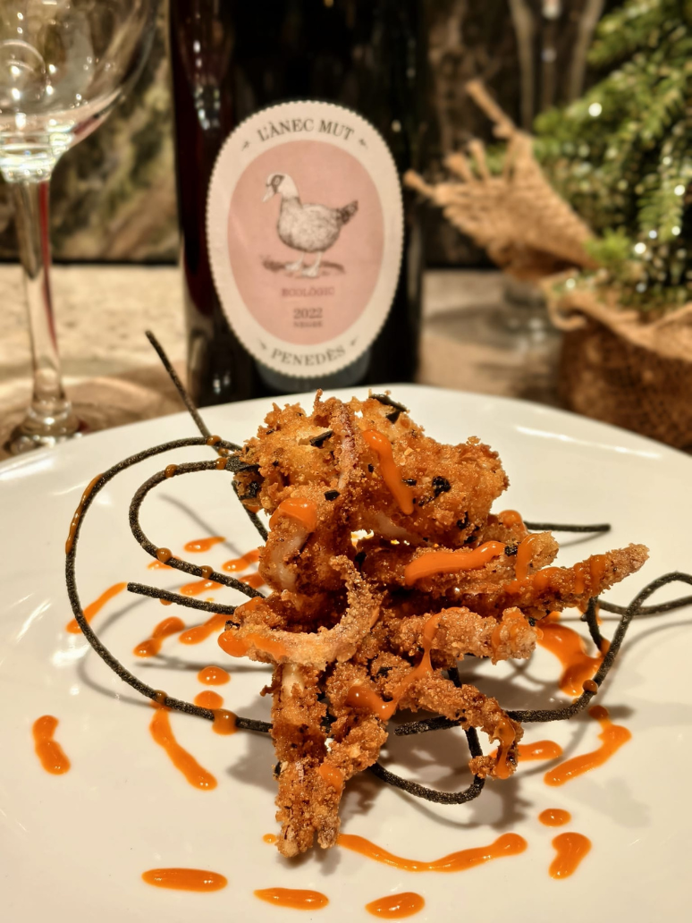 Calamar crujiente con toque de salsa brava.