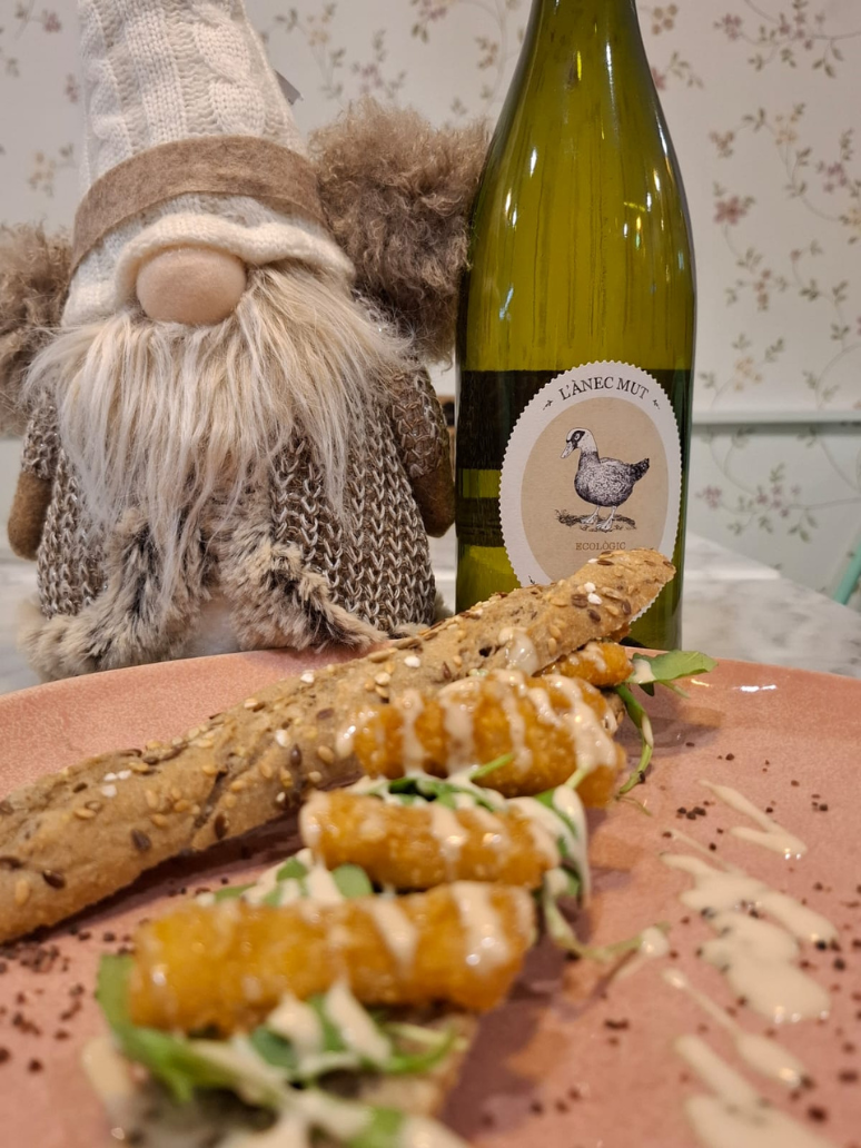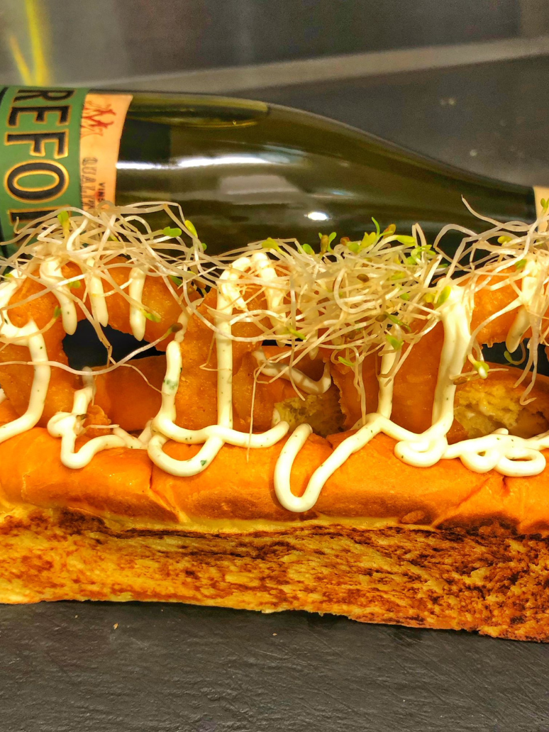 Semillado de calamar panko con mayonesa de vermut Rojo y rúcula.