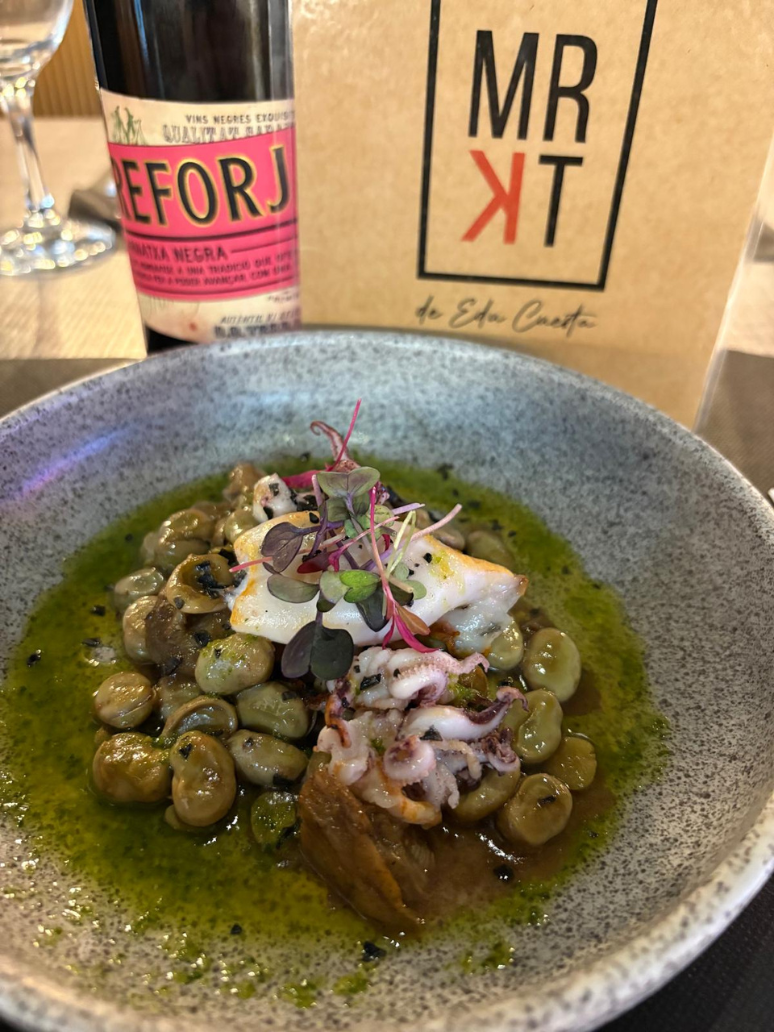 Salteado de alcachofas y habitas con púlpitos y calamarcito a la plancha.